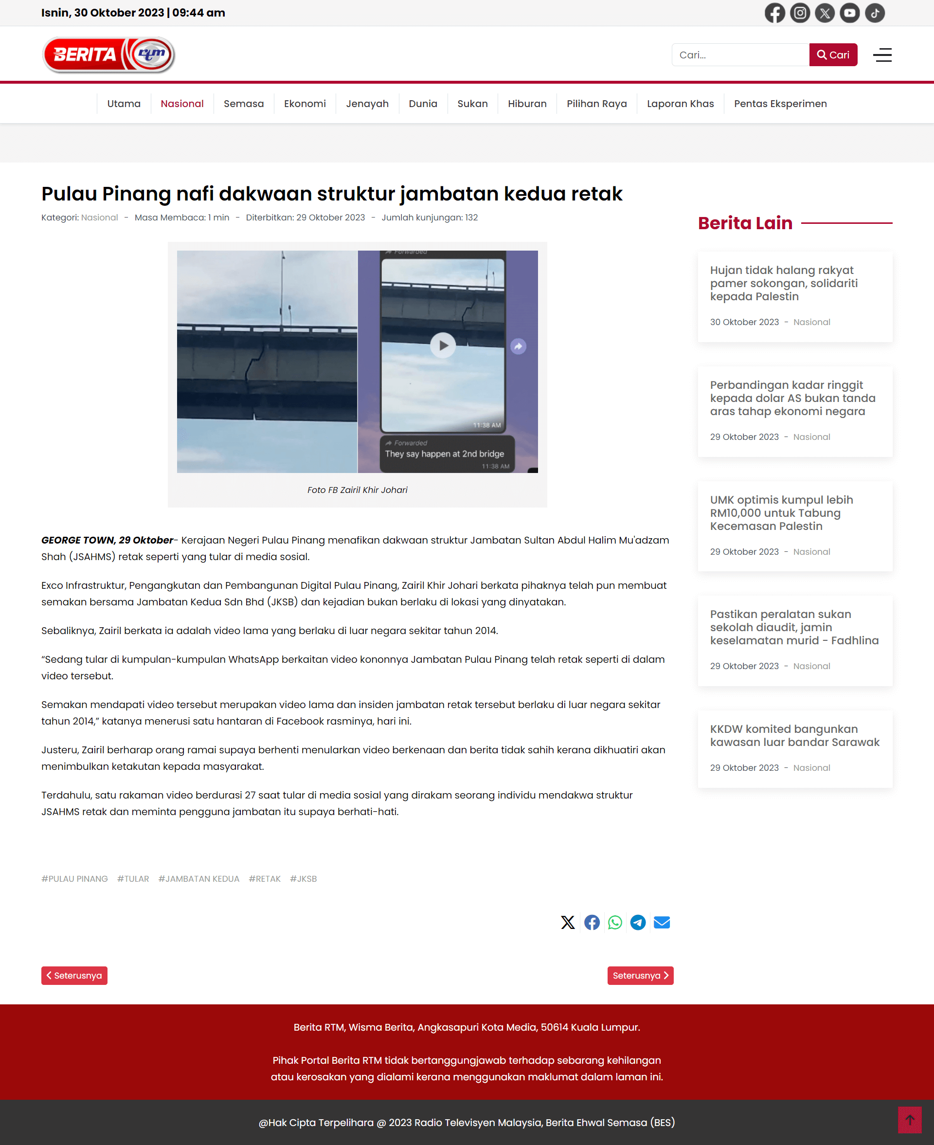Pulau Pinang nafi dakwaan struktur jambatan kedua retak