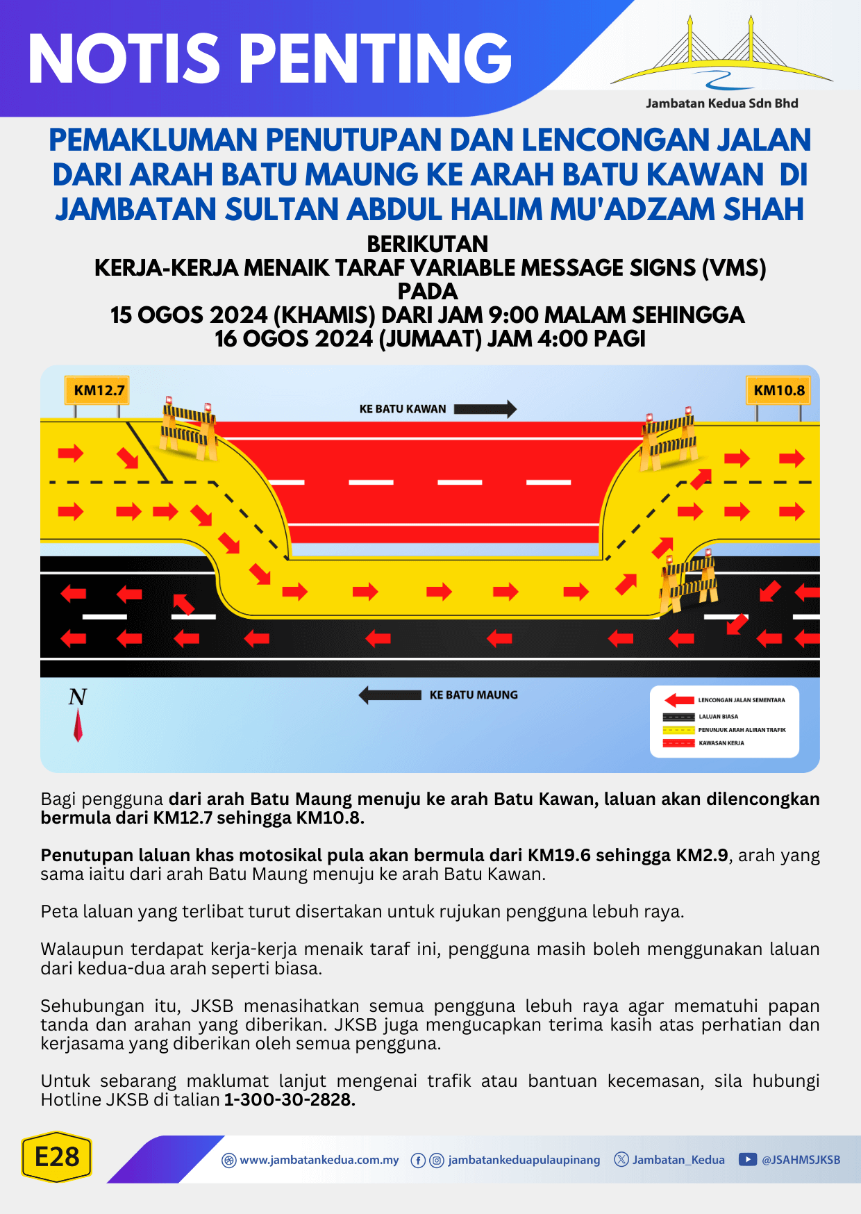 NOTIS PEMAKLUMAN PENUTUPAN DAN LENCONGAN – 14 & 15 OGOS 2024