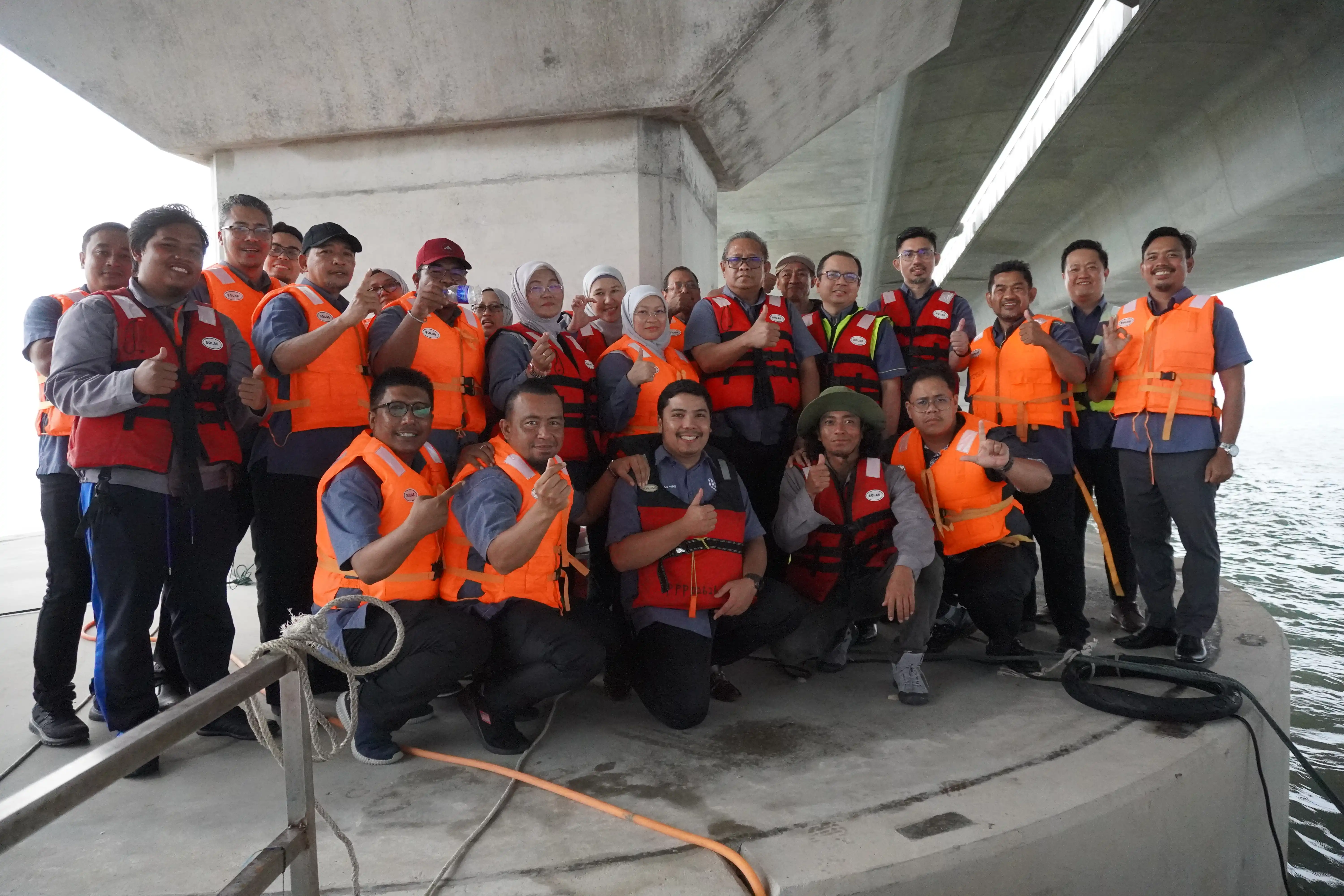Sesi perkongsian ini diadakan di Pejabat Operasi Jambatan Kedua Sdn Bhd (JKSB) dan memberi tumpuan kepada prosedur penyelenggaraan berkala serta teknologi terkini yang digunakan dalam memastikan keselamatan dan ketahanan struktur jambatan.